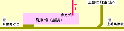 閑散期は,下の駐車場は閉鎖されリフトは運休しています.その時は,上の駐車場に |